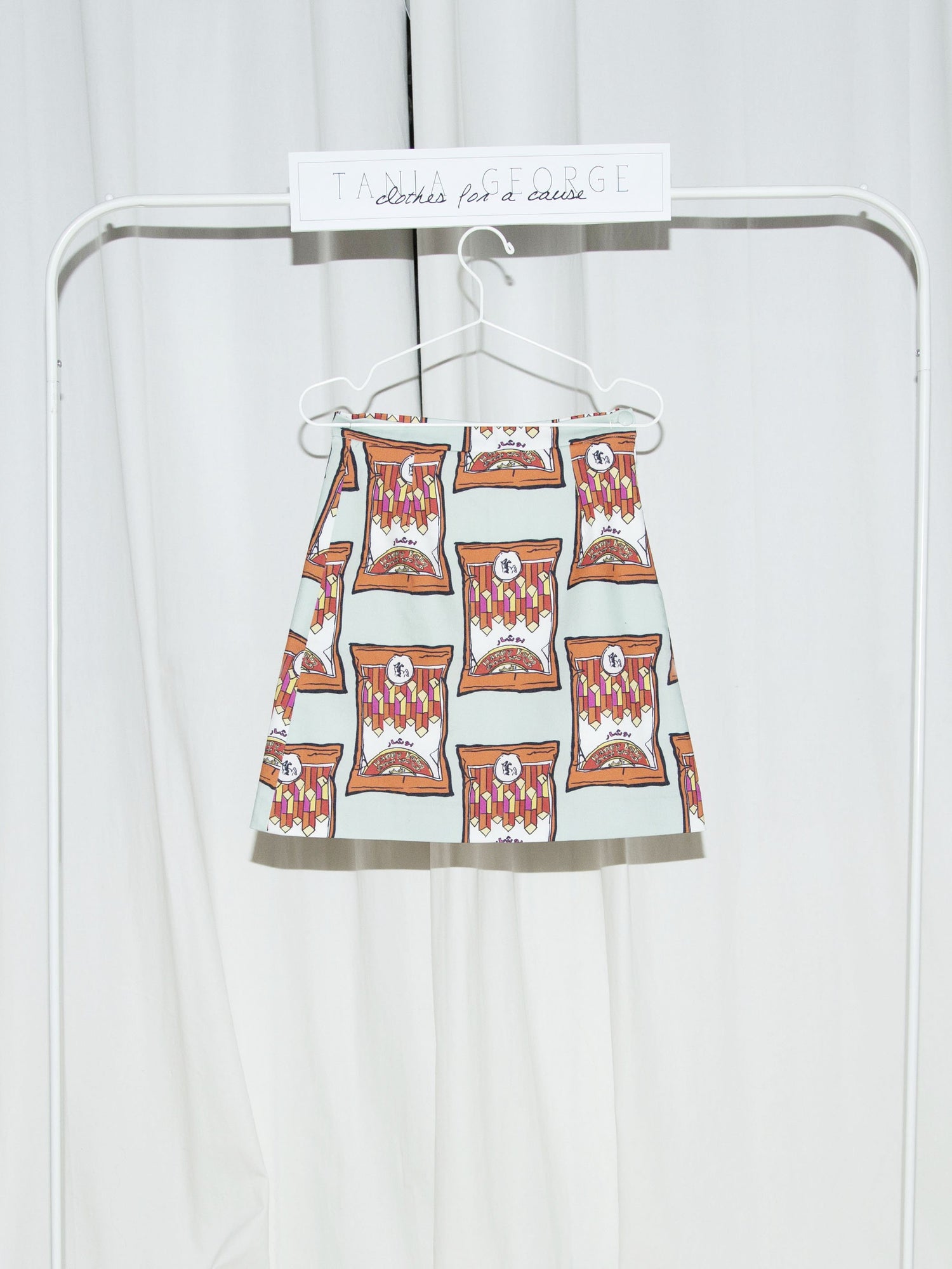 Fitted A-Line skirt with the iconic Bushar print. This product is available in green and orange.