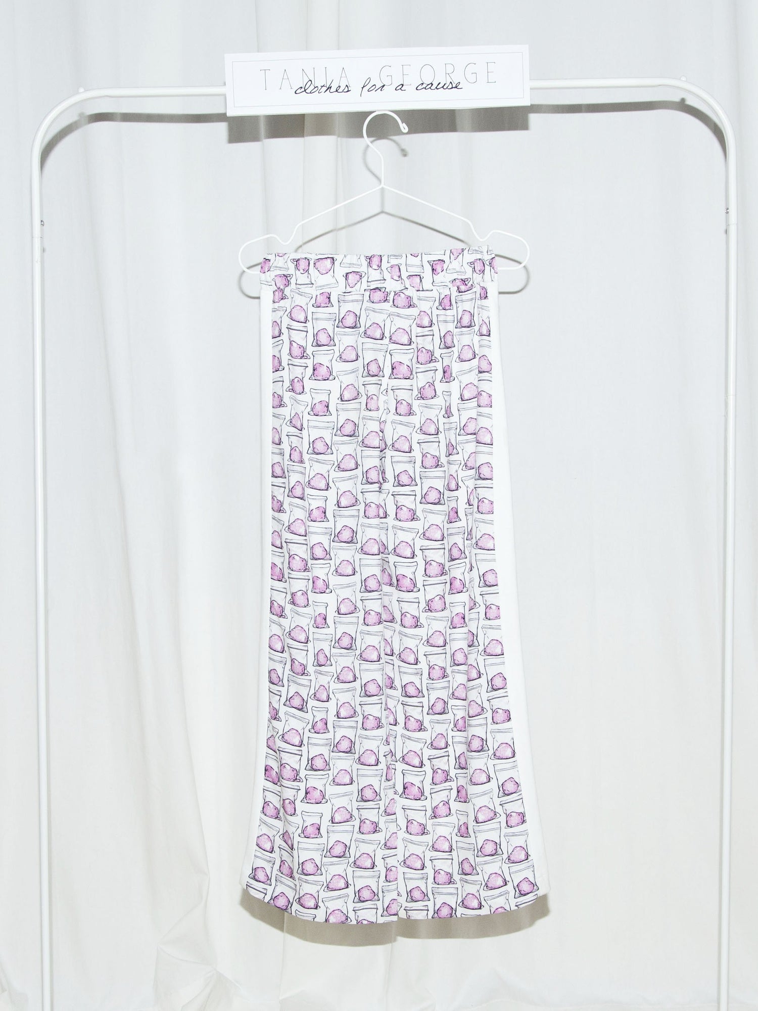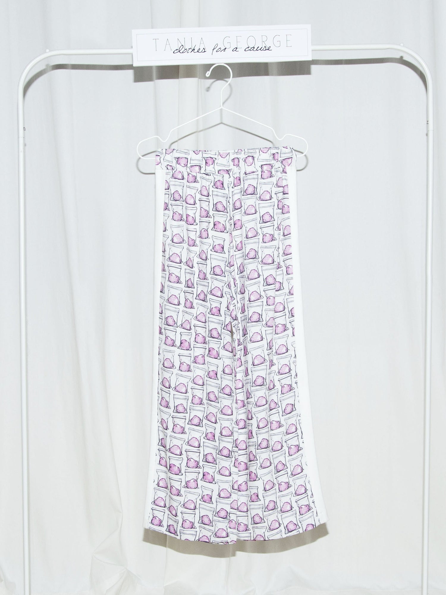 The printed Cotton Candy track pants with white stripes down both sides. The comfortable wide leg silhouette makes them your go-to pair of pants for any occasion.